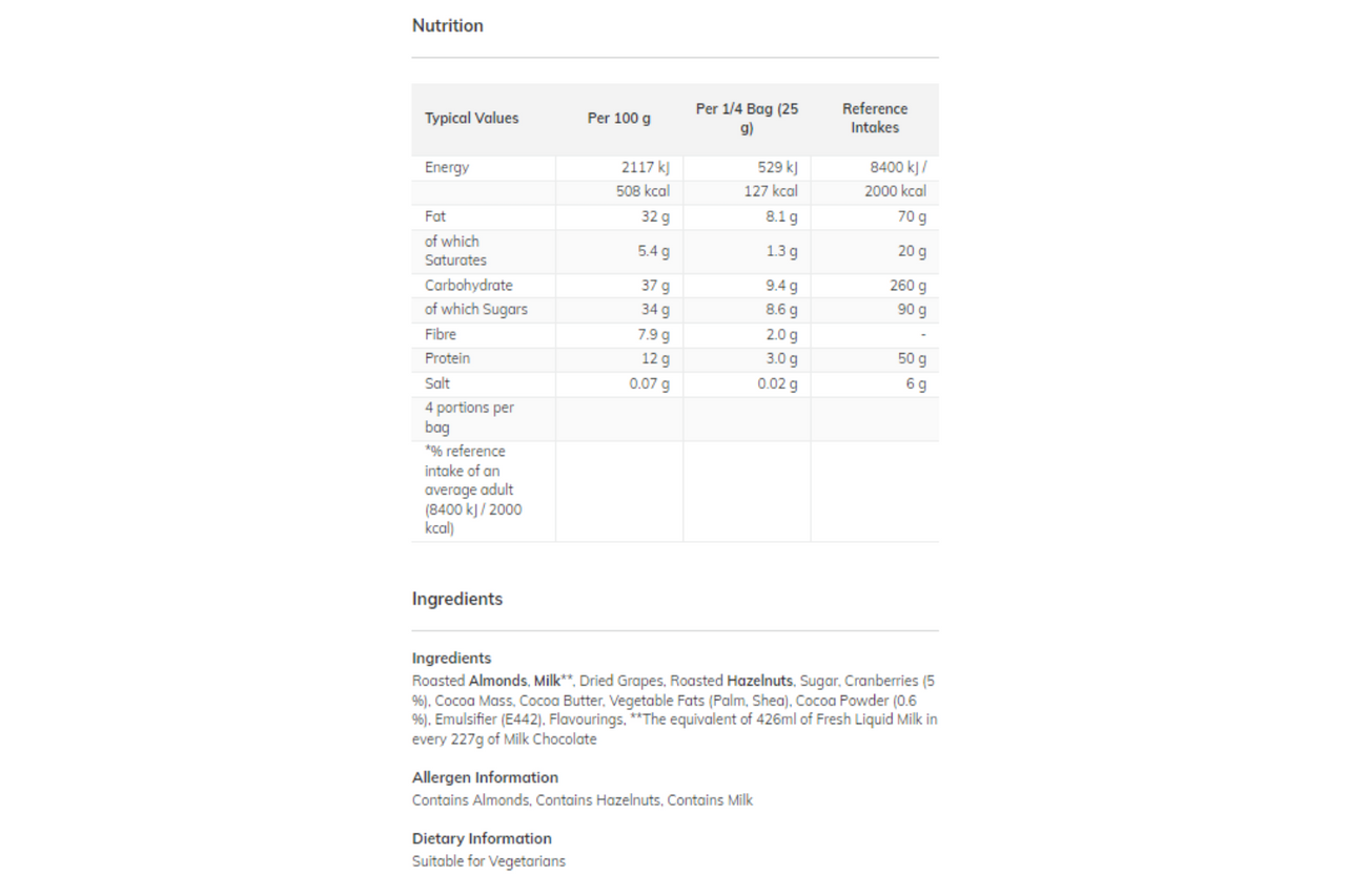 Please note that while we take every care to ensure the product information displayed on our website is correct, product recipes and formulas are regularly changed. Nutrition and allergen information may be affected; therefore, you should always check product labels and not rely solely on the information presented here.