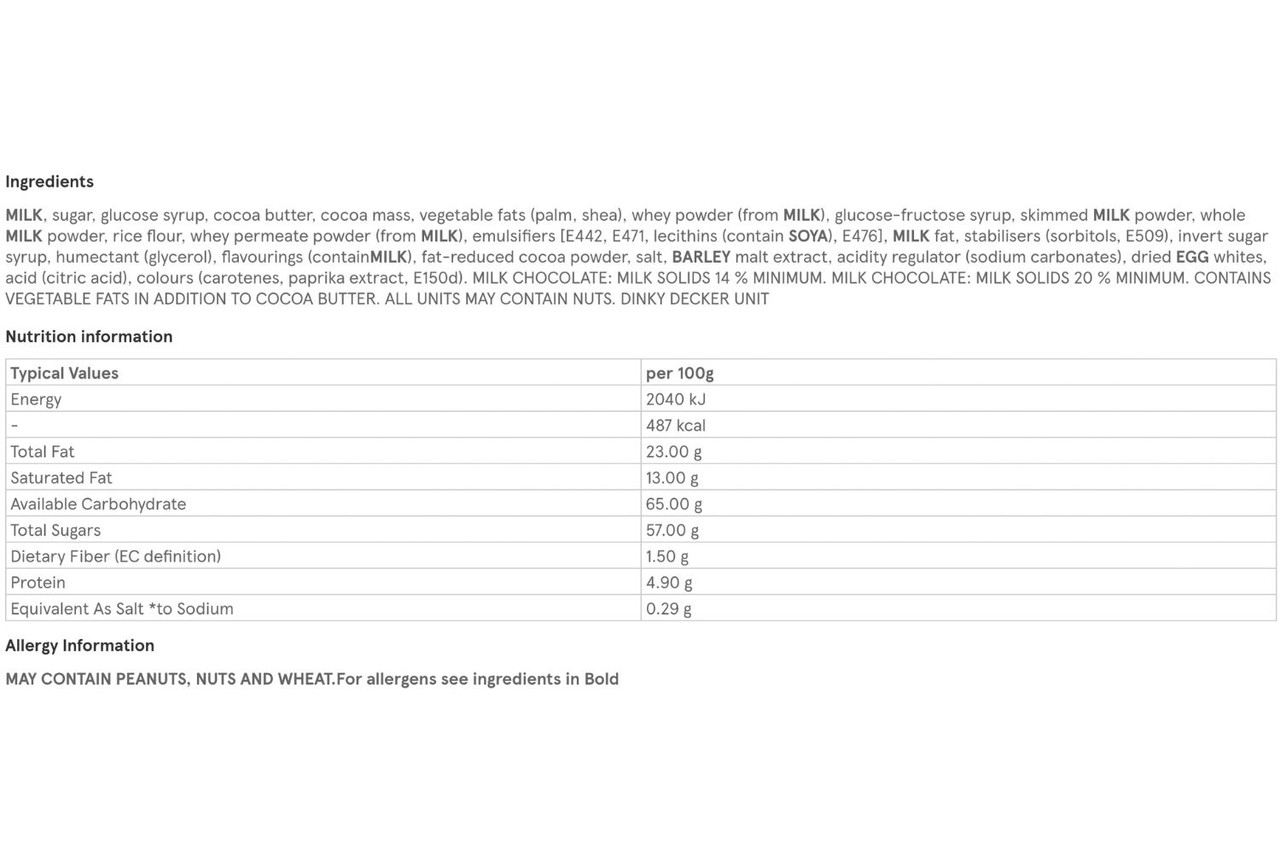 Please note that while we take every care to ensure the product information displayed on our website is correct, product recipes and formulas are regularly changed. Nutrition and allergen information may be affected; therefore, you should always check product labels and not rely solely on the information presented here.