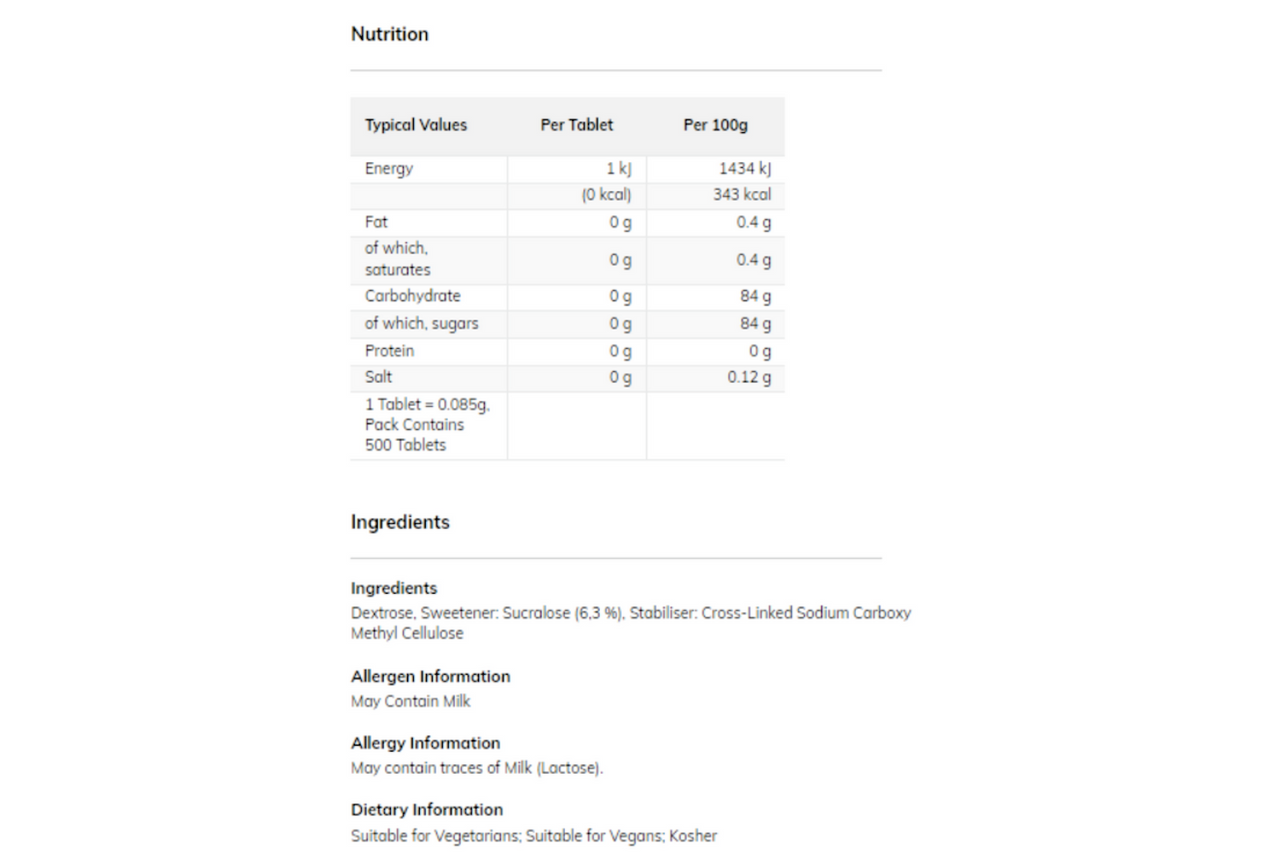 Please note that while we take every care to ensure the product information displayed on our website is correct, product recipes and formulas are regularly changed. Nutrition and allergen information may be affected; therefore, you should always check product labels and not rely solely on the information presented here.