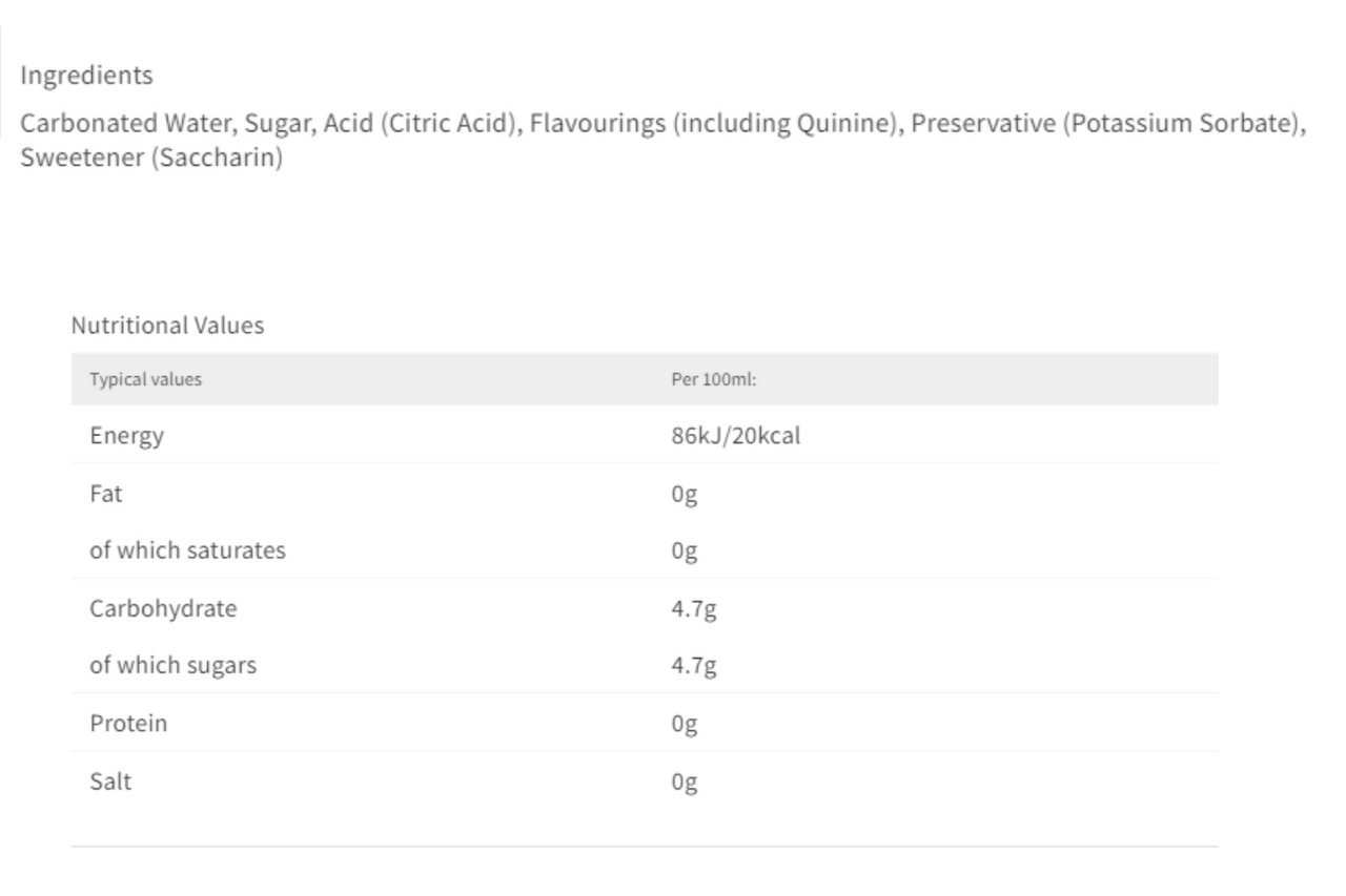 Manufacturer/Distributor : Britvic