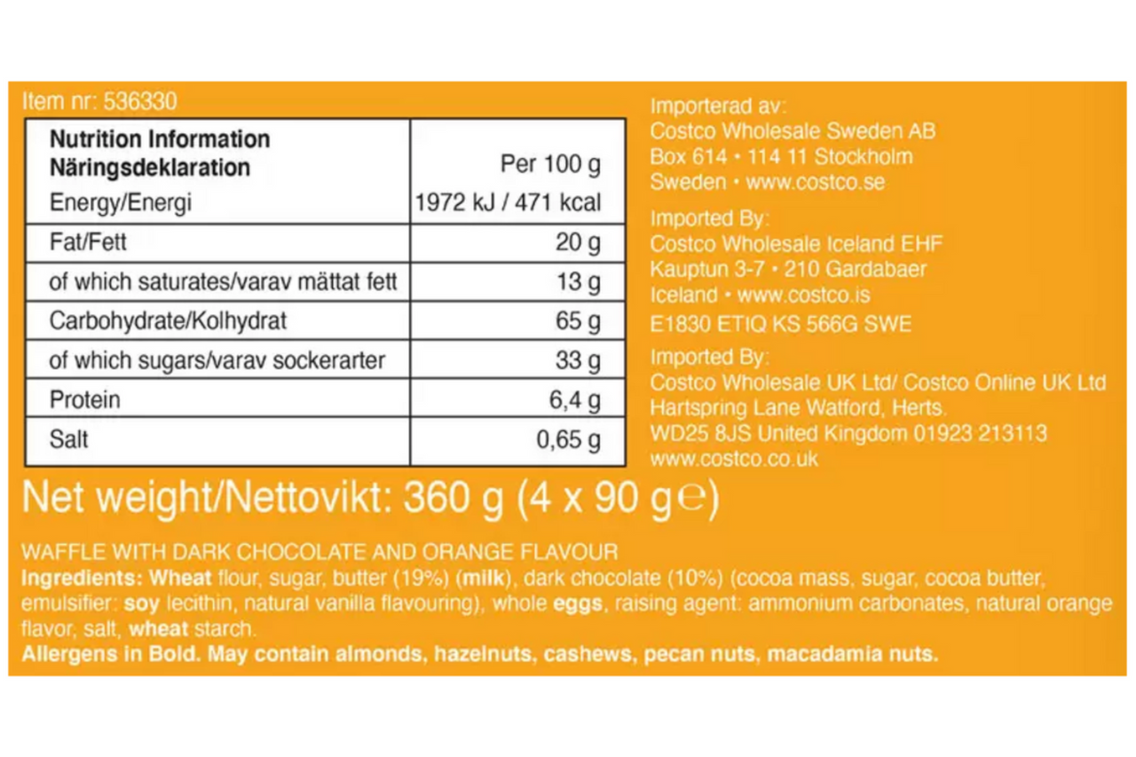 Manufacturer/Distributor : Costco Wholesale UK Ltd