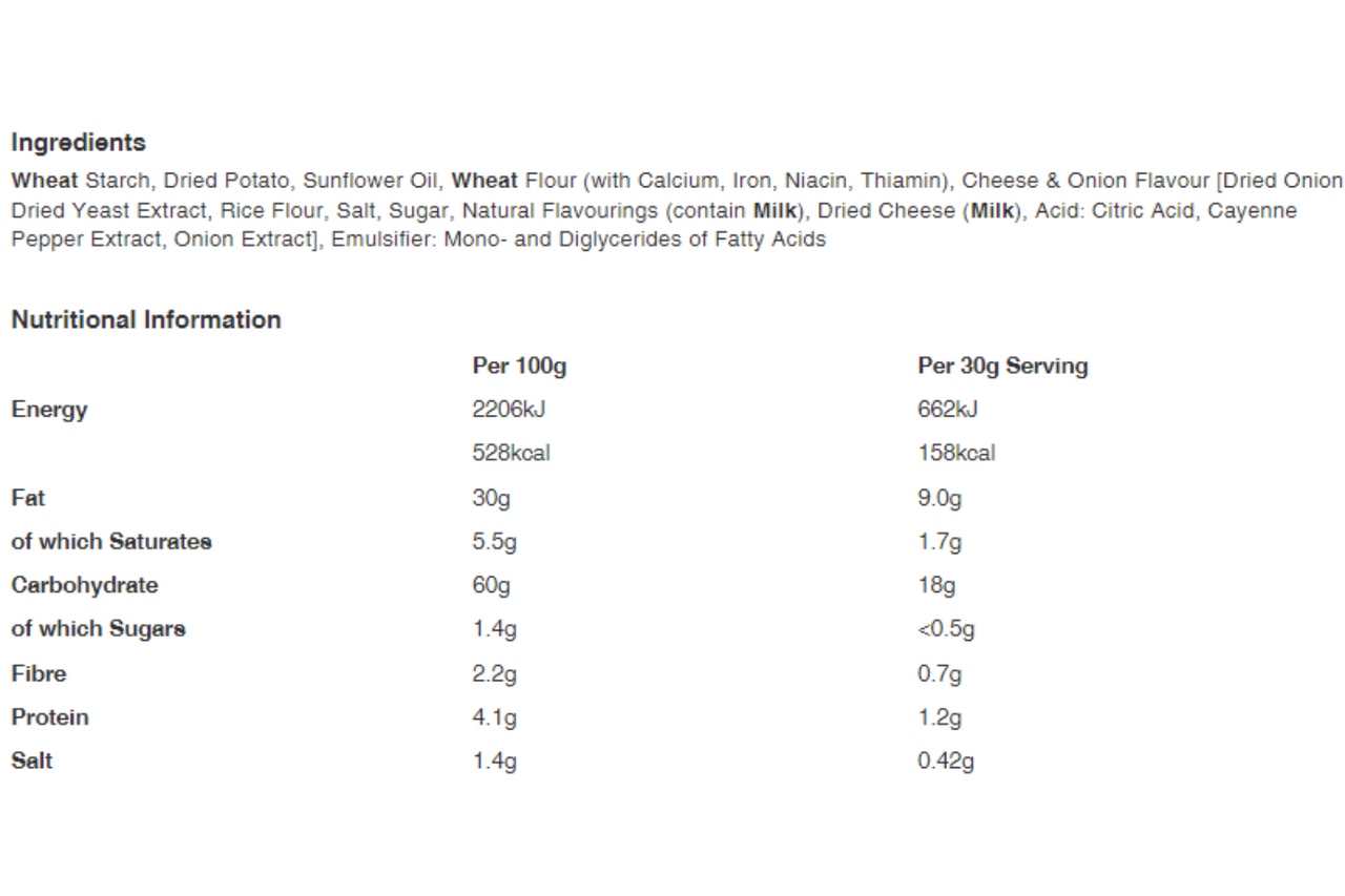 Please note that while we take every care to ensure the product information displayed on our website is correct, product recipes and formulas are regularly changed. Nutrition and allergen information may be affected; therefore, you should always check product labels and not rely solely on the information presented here.