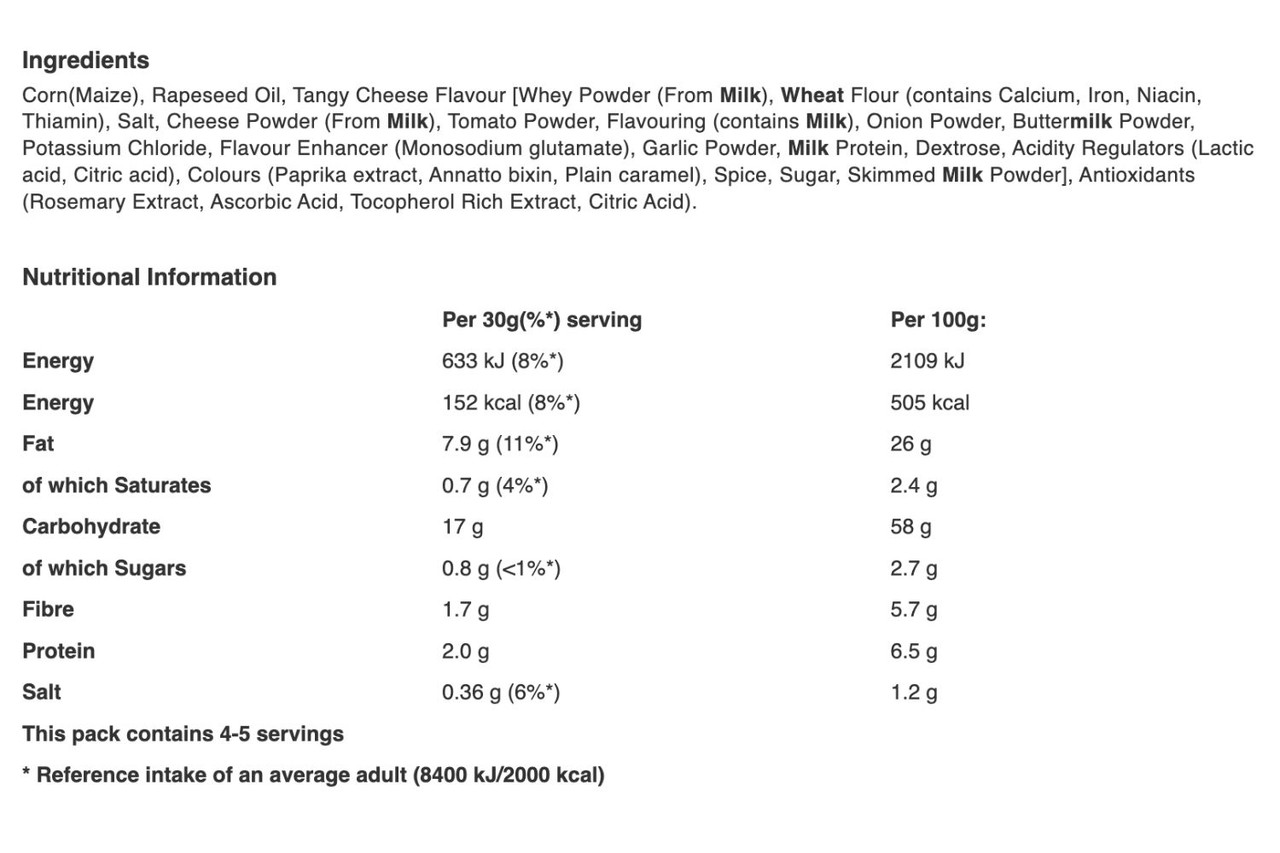 Please note that while we take every care to ensure the product information displayed on our website is correct, product recipes and formulas are regularly changed. Nutrition and allergen information may be affected; therefore, you should always check product labels and not rely solely on the information presented here.