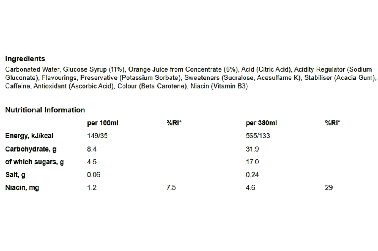 Manufacturer/Distributor : Lucozade Ribena Suntory Limited