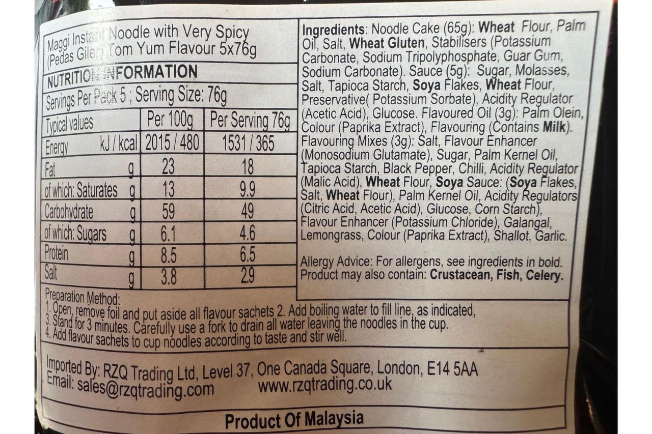 Maggi - 3-min Instant Noodles - Tom Yum (Pedas Giler) - 5 x 76g