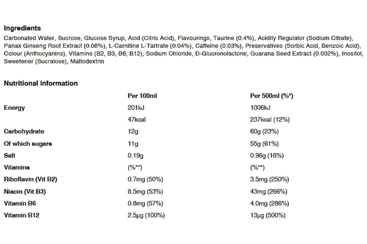 Manufacturer/Distributor : Monster Energy UK Ltd