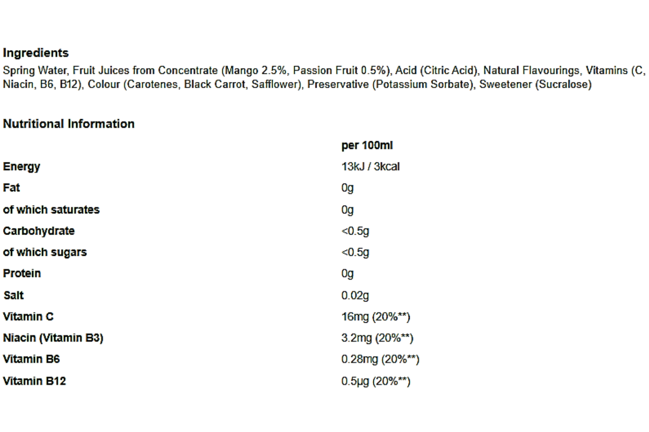 Rubicon Spring - Vits - Mango Passion Still Spring Water & Vitamins Drink - 500ml