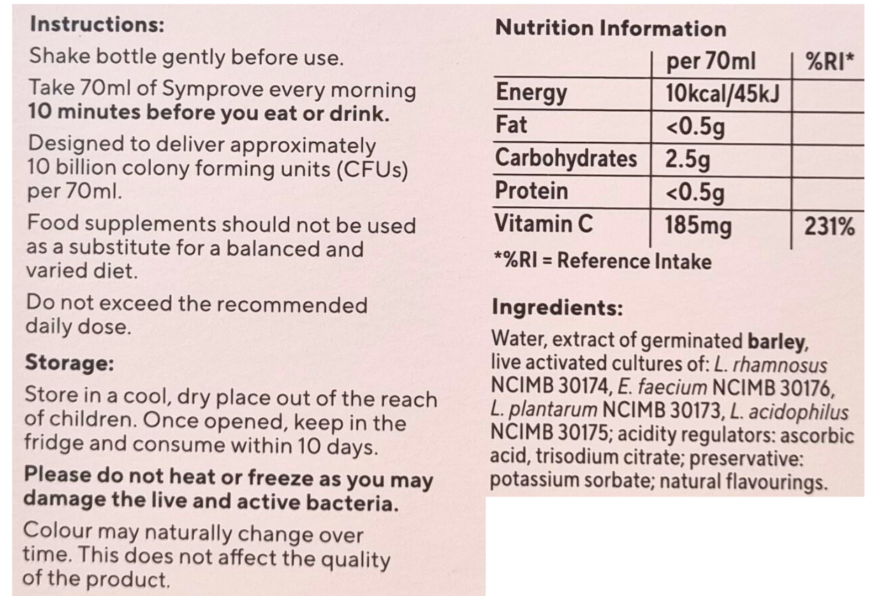 Symprove - Daily - Live & Active Bacteria Food Supplement - Original Flavour - Vegan - 4 x 500ml