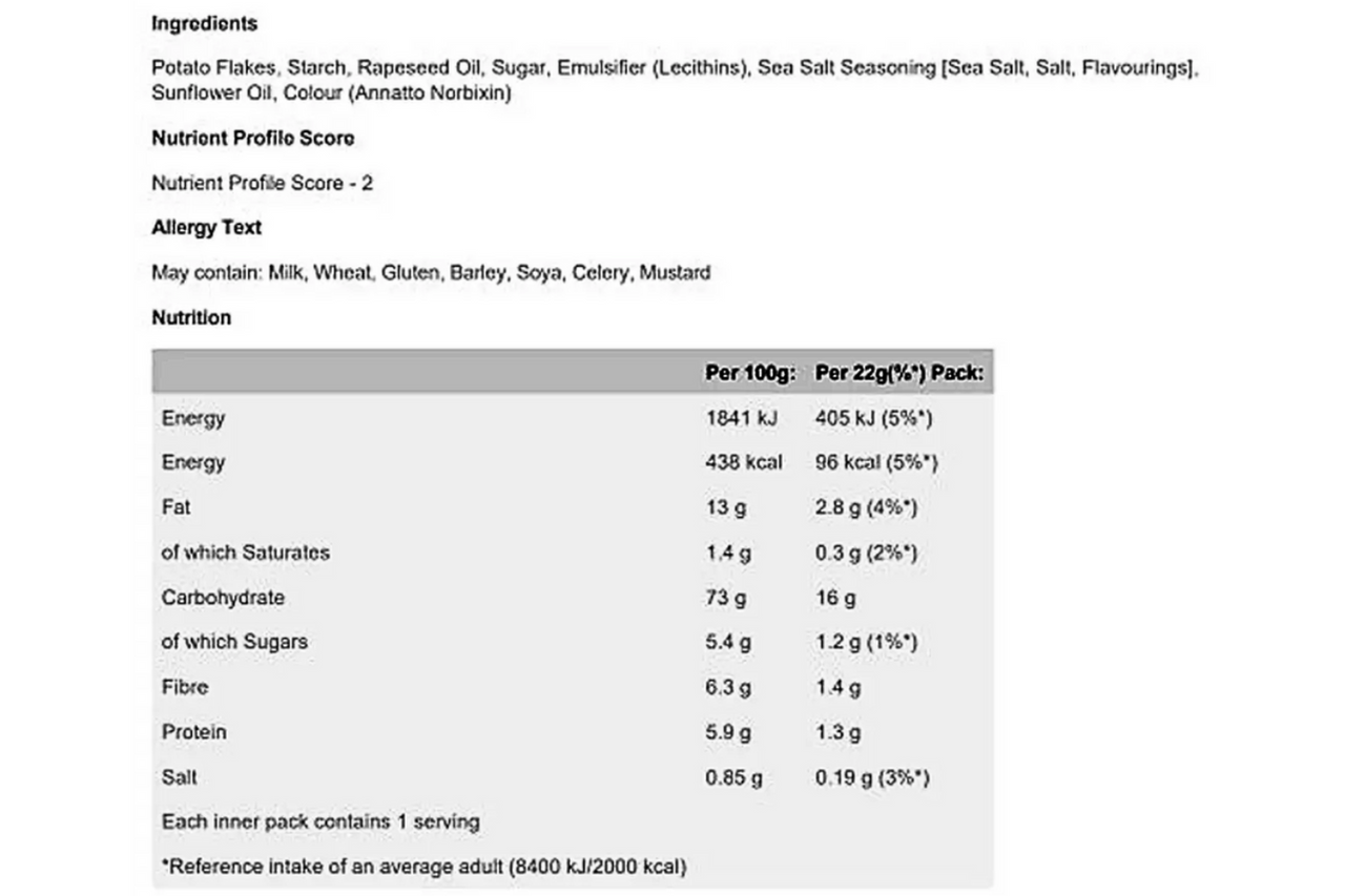 Manufacturer/Distributor : Walkers Snack Foods Ltd