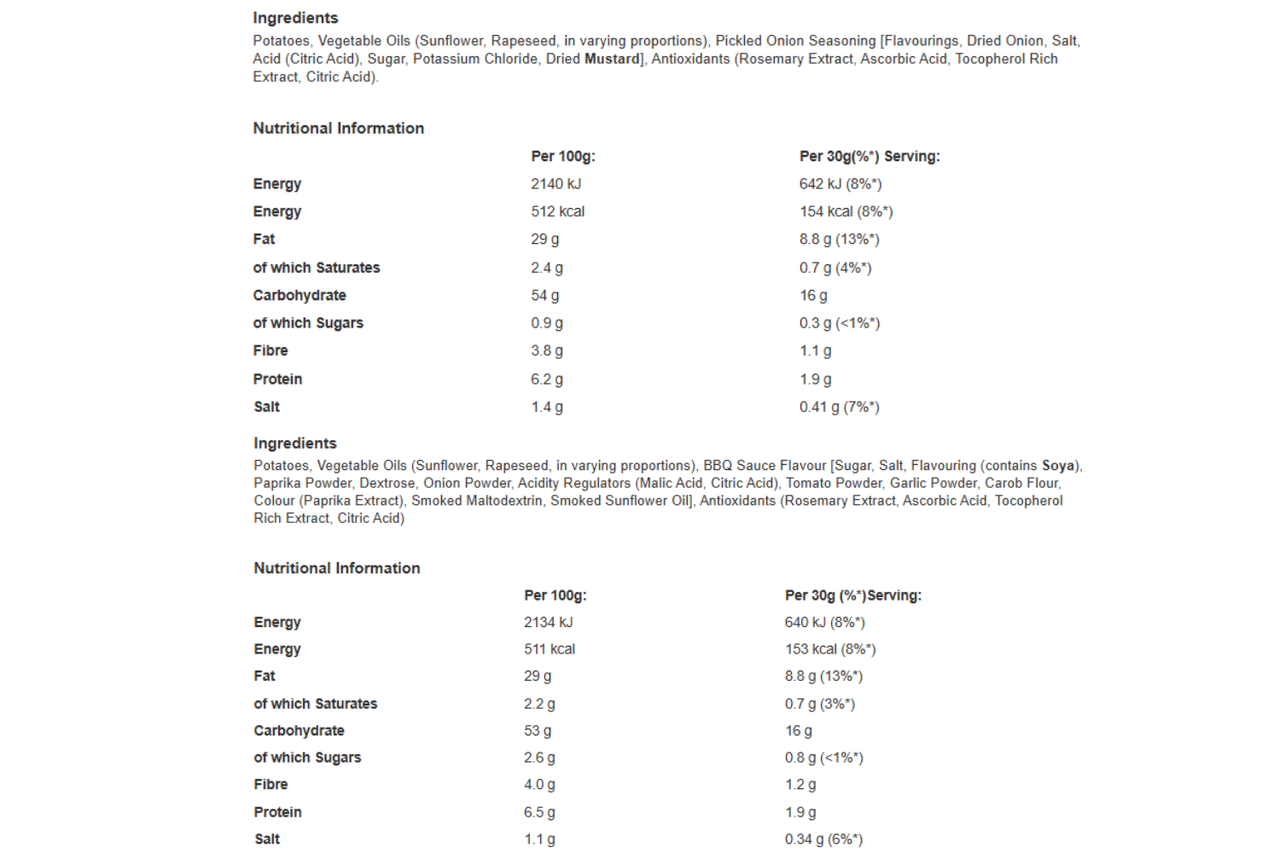 Manufacturer/Distributor : Walkers Snack Foods Ltd