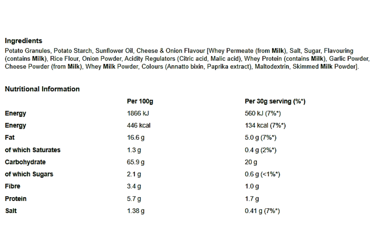 Please note that while we take every care to ensure the product information displayed on our website is correct, product recipes and formulas are regularly changed. Nutrition and allergen information may be affected; therefore, you should always check product labels and not rely solely on the information presented here.
