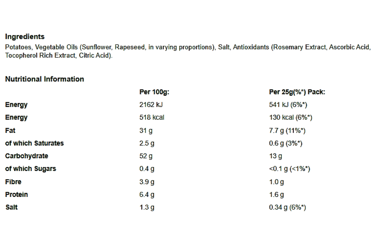 Manufacturer/Distributor : Walkers Snack Foods Ltd