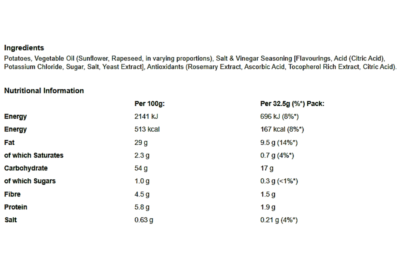 Walkers - Salt & Vinegar Flavour Crisps - 32.5g