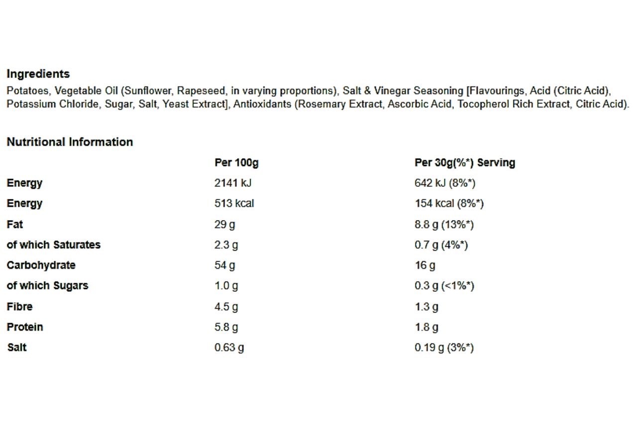 Walkers - Salt & Vinegar Flavour Crisps - 70g.
