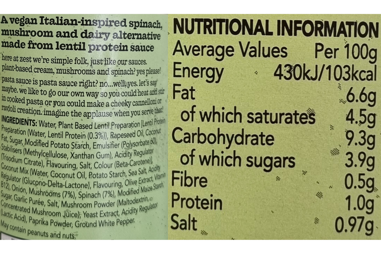 Zest - Vegan Spinach, Mushroom & Ric***a Sauce with Lentil Protein - 340g